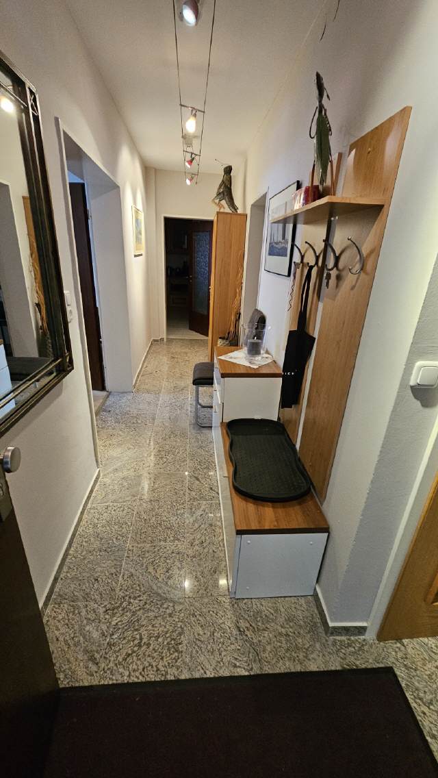 Die Ferienwohnung ist mit Wohnzimmer, zwei Schlafzimmern, zwei Badezimmern, Einbauküche und Flur sehr großzügig aufgeteilt.