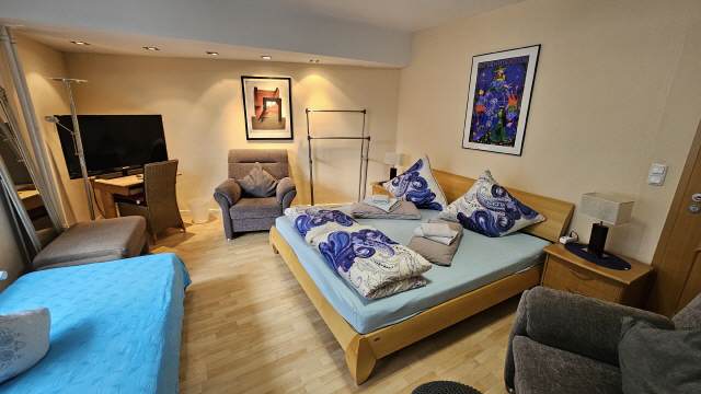 Im Schlafzimmer 2 befindet sich ein großes Doppelbett mit zwei Nachttischen, sowie ein Kleiderschrank mit ausreichend Platz für Ihr Reisegepäck. Die Ausstattung wird durch eine Sitzecke mit Leselampe, einem Schreibtisch mit Stuhl und einem großen LCD-Fernseher komplettiert.