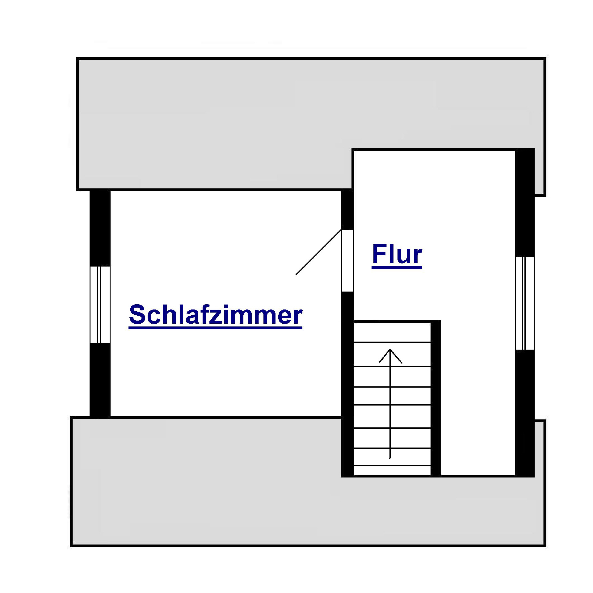 Im Obergeschoss befindet sich das Schlazimmer und im Vorflur ein Schreibtisch mit Sitzgelegenheit.