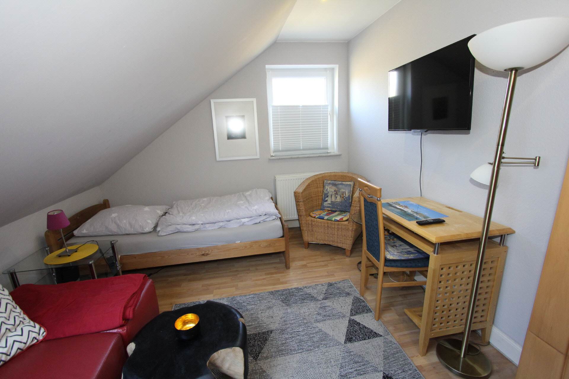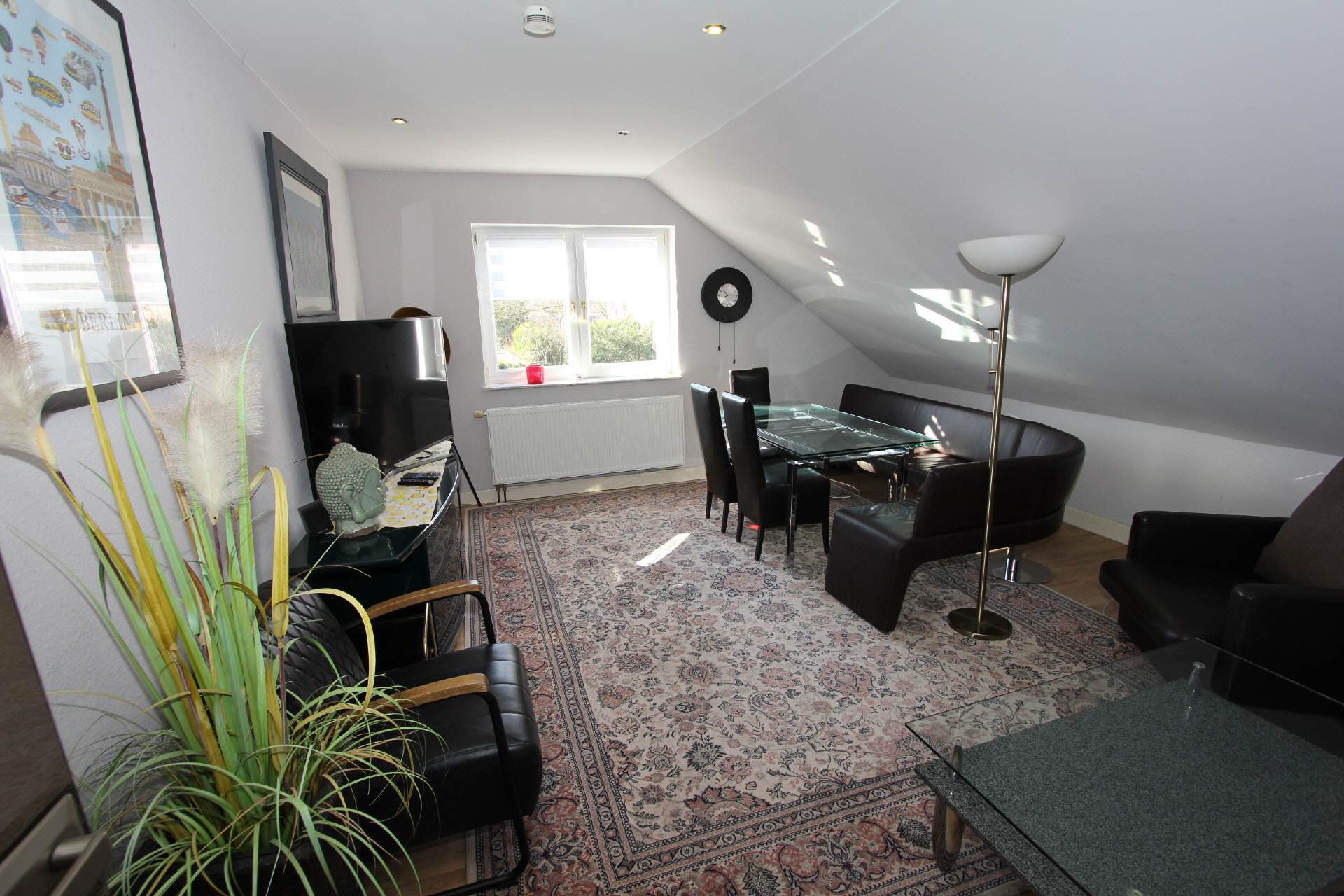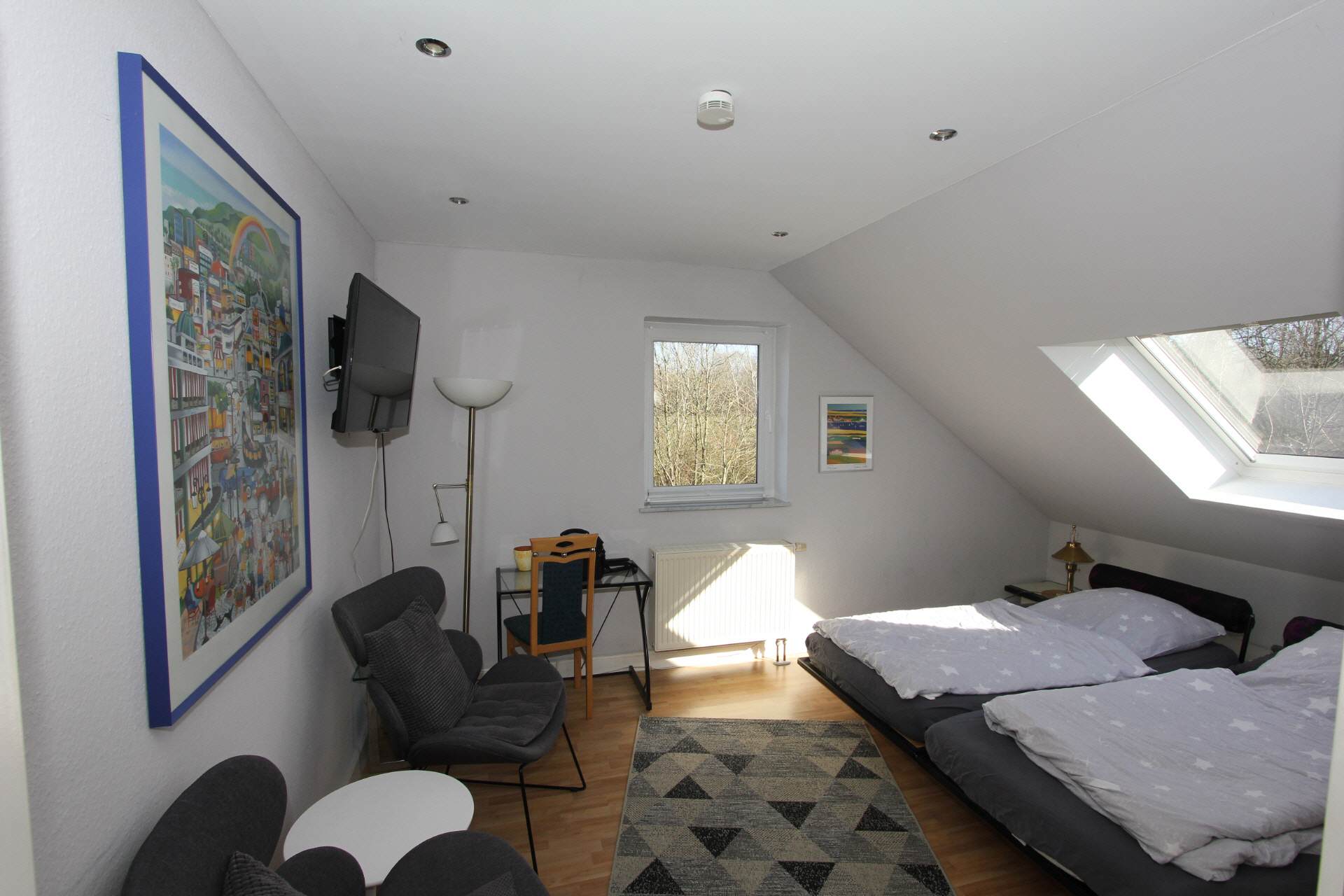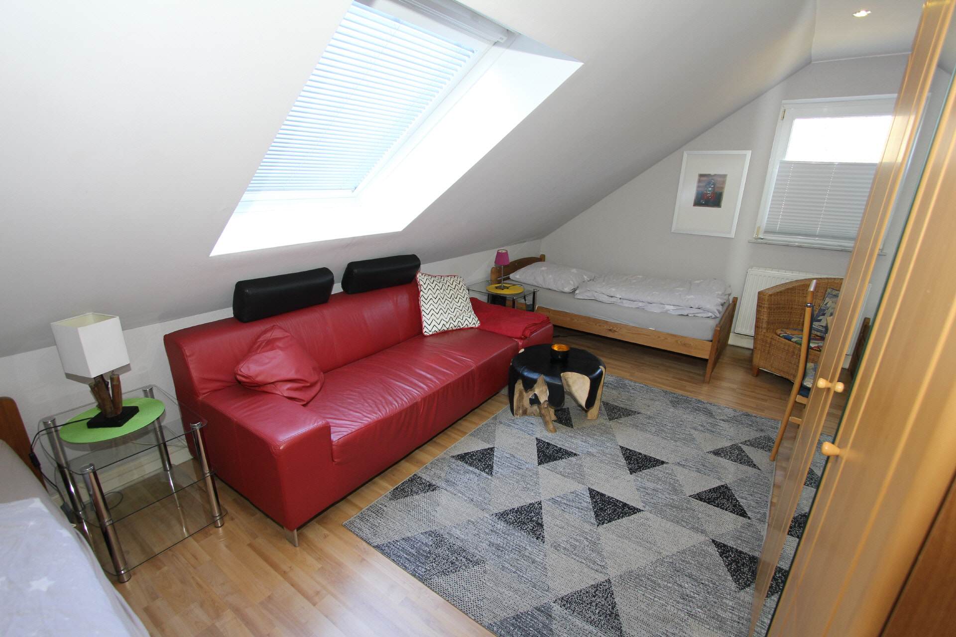 Die Ferienwohnung befindet sich im Dachgeschoss eines Dreifamilienhauses, direkt am Naherholungsgebiet Kiel-Russee. Die Wohnung hat eine Größe von ca. 90 qm und ist exklusiv eingerichtet.