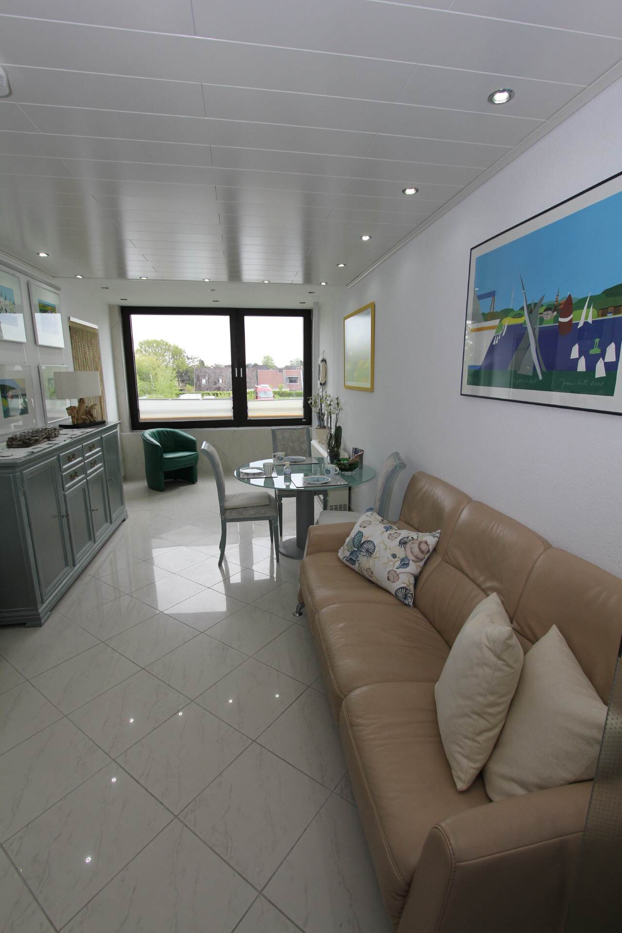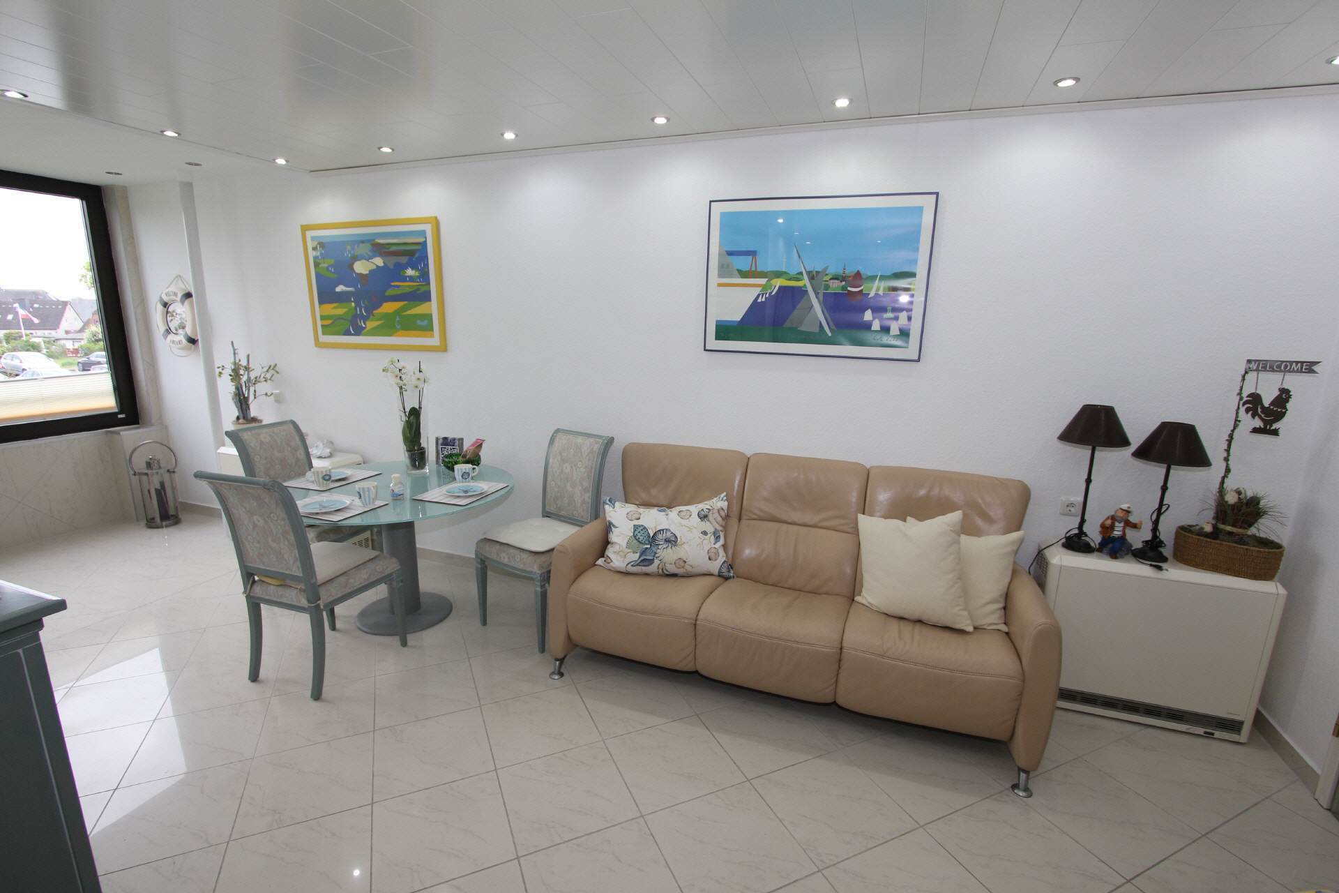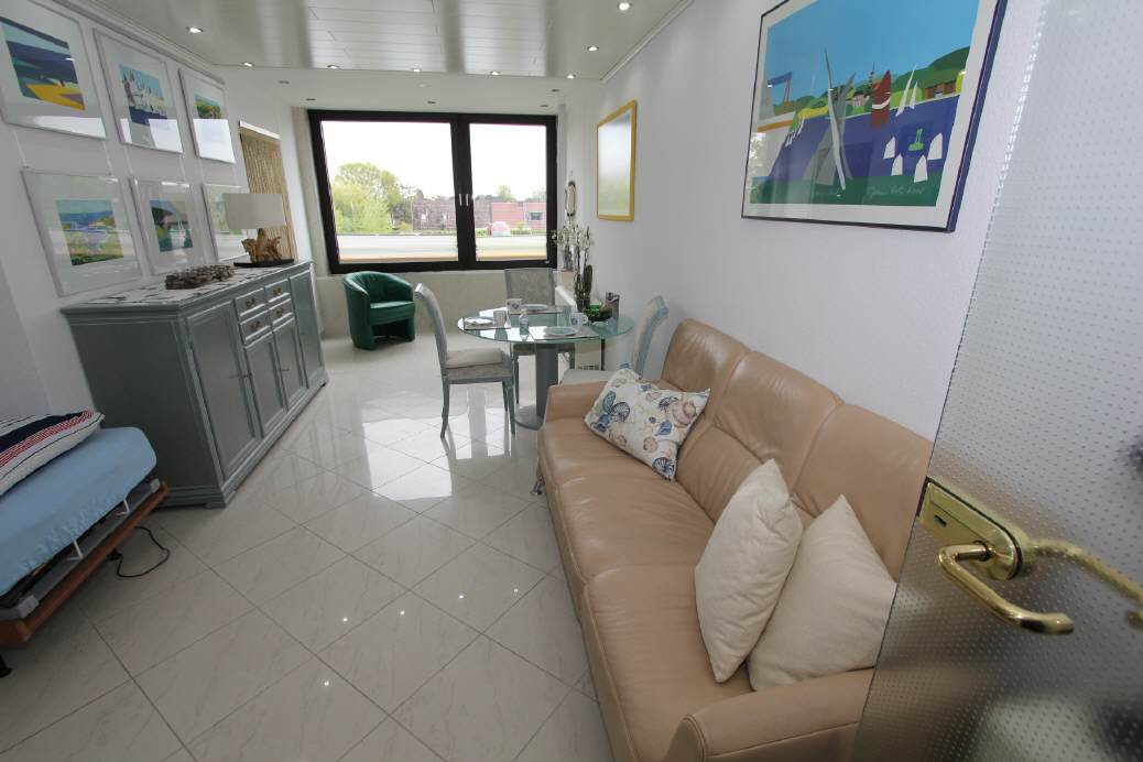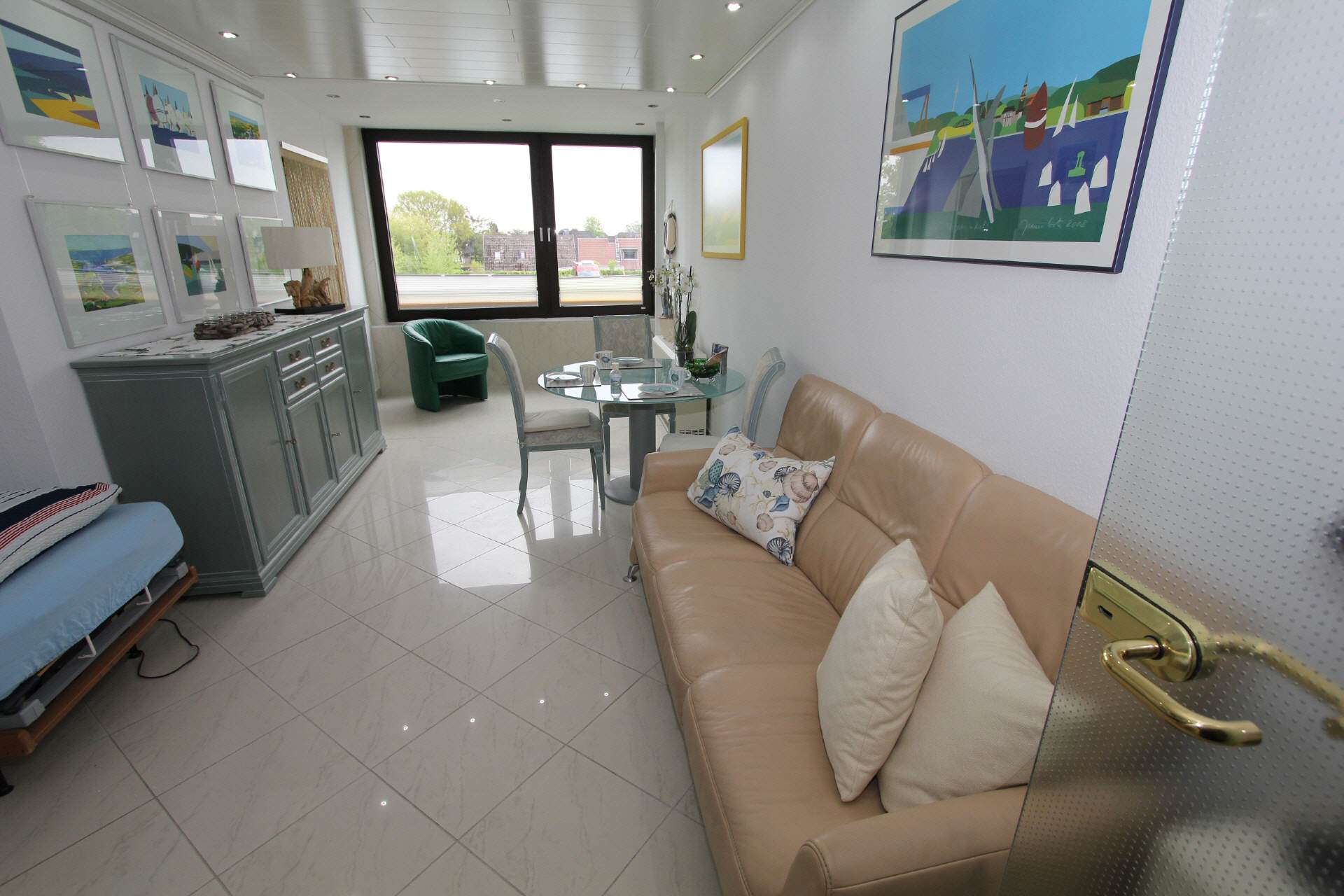 Das Wohnzimmer bzw. der Aufenthaltsraum ist etwa 30 qm groß. Hier befindet sich eine gemütliche Sofa-Sitzecke sowie ein Esstisch mit sechs Stühlen. Für Ihre Unterhaltung sorgt ein großer LCD-Fernseher und eine Stereoanlage und ein DVD-Player.