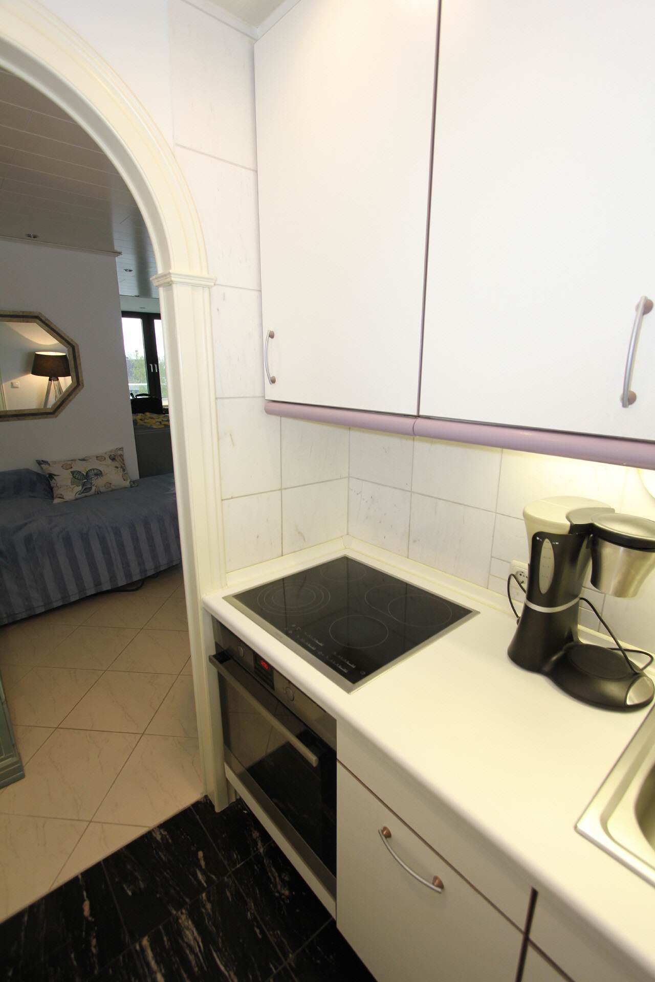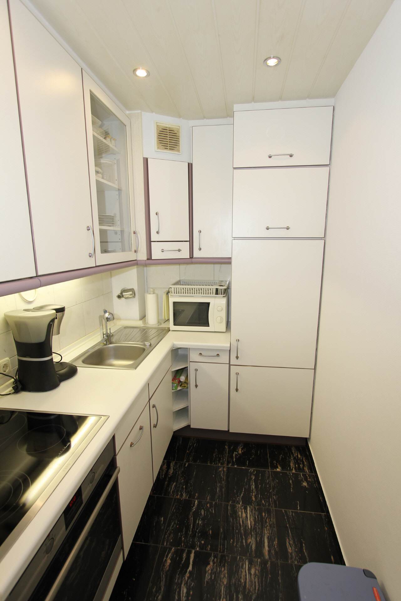 Die Küche ist vollständig eingerichtet. Dazu gehören selbstverständlich ein Toaster, eine Kaffemaschine, eine Spüle, ein Kühlschrank, ein Geschirrspüler, ein Elektroherd und ein Mikrowellenherd. Spül- und Geschirrtücher sind ebenfalls vorhanden.